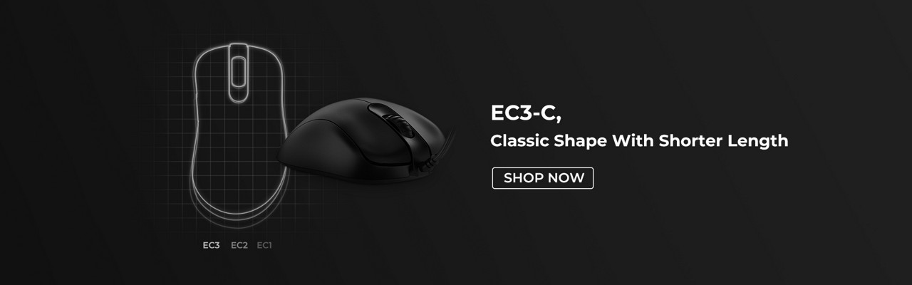 There’s also a new shape in EC3-C. The first two mice in the new EC-C series retain the familiar ergonomic shape with a slightly shorter length. Palm grippers and claw grippers alike should maintain a comfortable fit while improving vertical movement. Plus, the mouse has space on the right side for you to adjust and customize your grip.