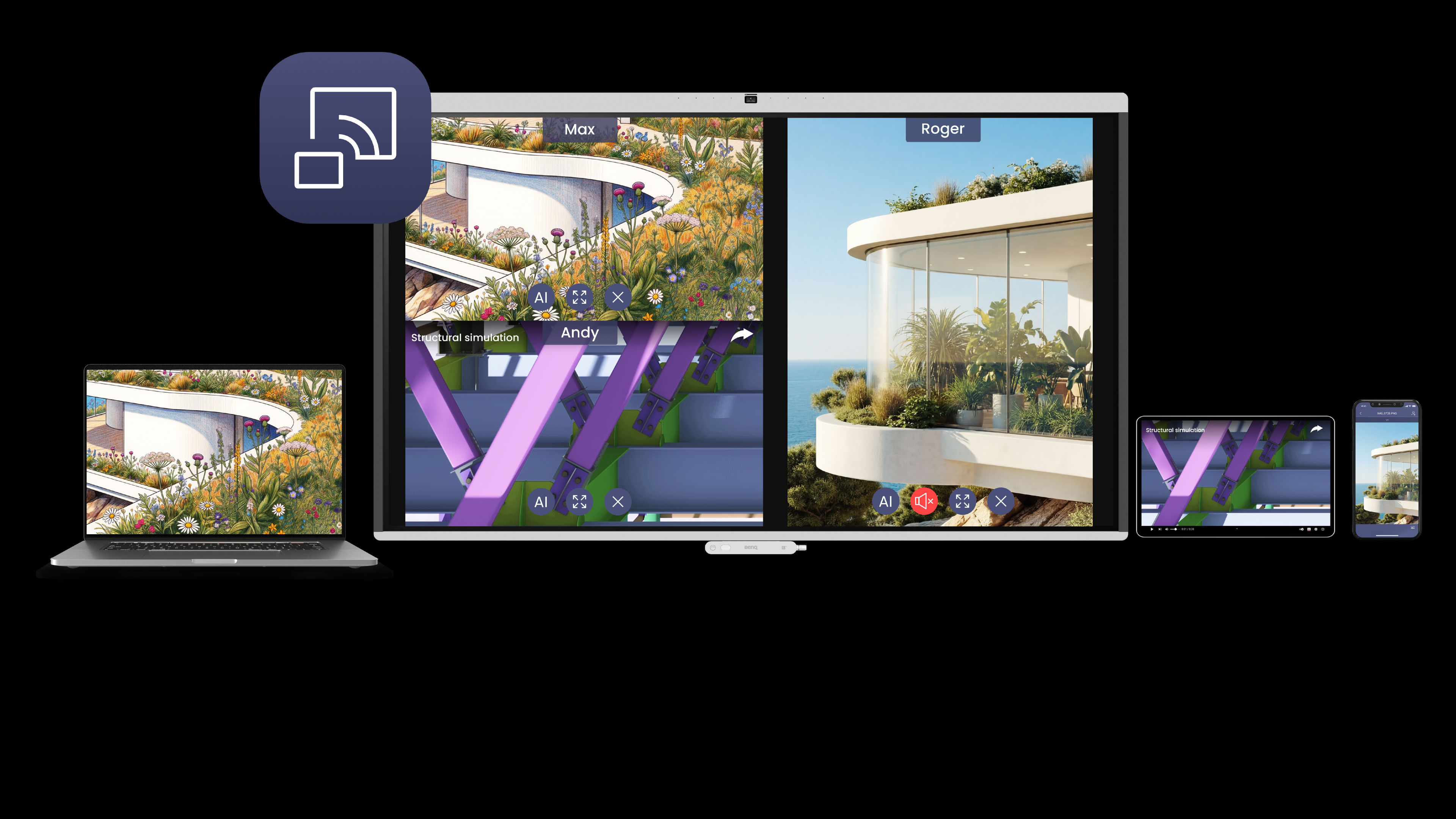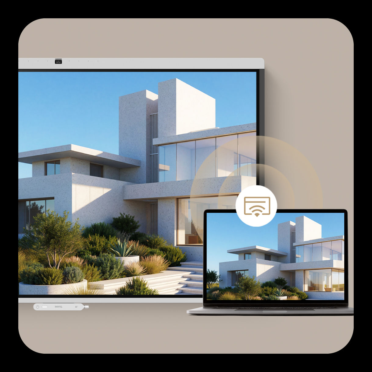 Wirelessly cast your entire screen, a single app, or extend your interactive display with InstaShare 2. For app-free sharing, use Miracast, AirPlay, Google Cast, or webcasting.