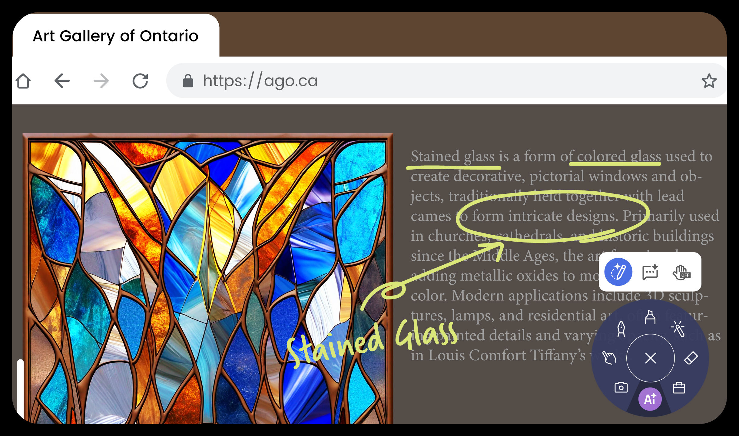 Annotate over apps, documents, and input sources. A passive pen is included and stores neatly in the pen holder