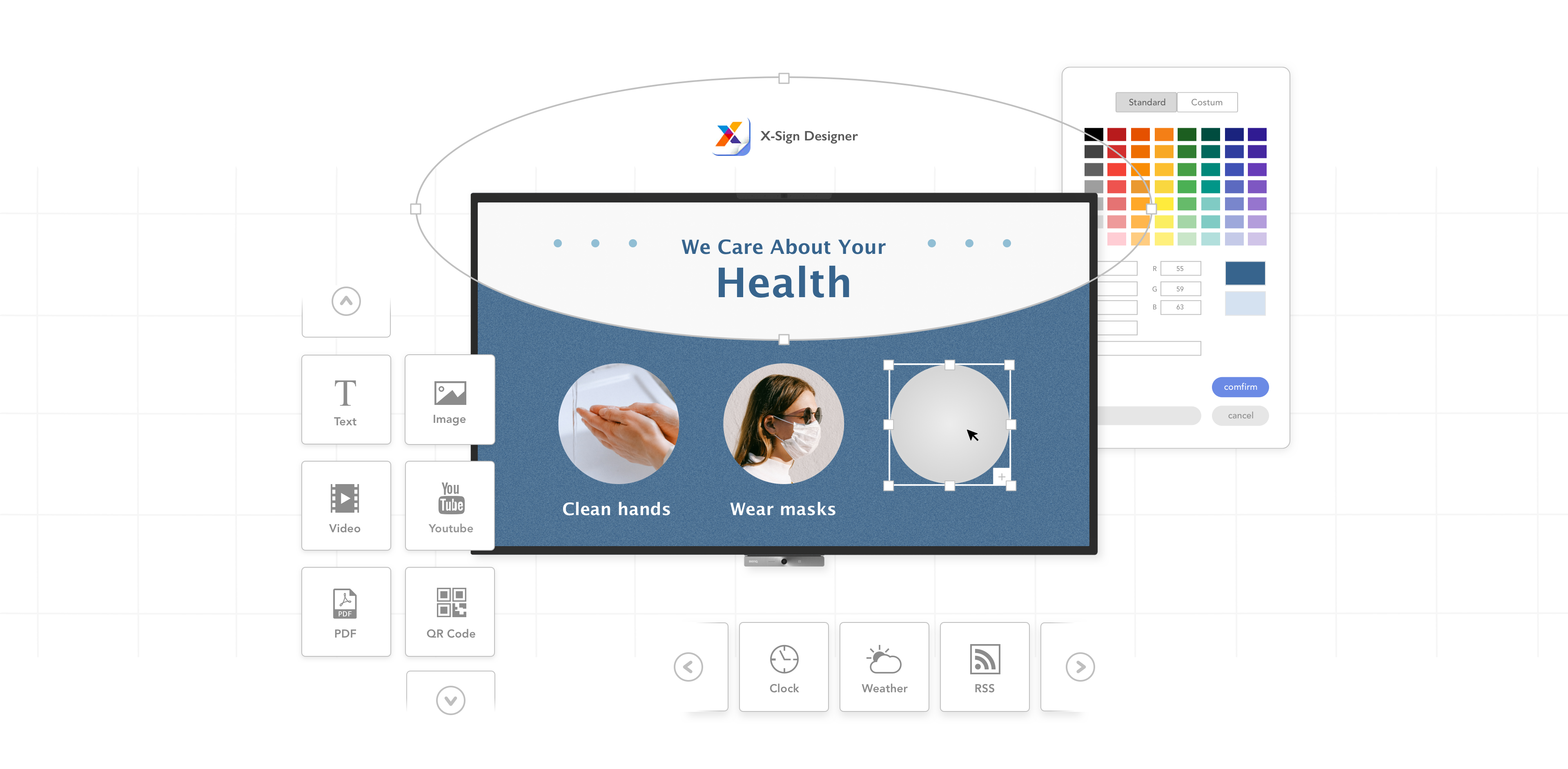 X-Sign allows you to fully utilize your displays by turning them into audiovisual billboards that can be used to publish announcements or build brand identity.