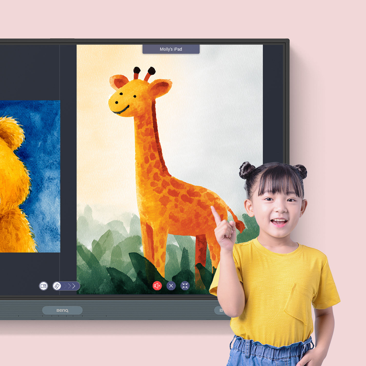 Showcase student work with ease. Teachers control the BenQ Board from anywhere in the classroom using a tablet, wirelessly casting student work to the big screen with a single tap. Every student gets the opportunity to share and shine.