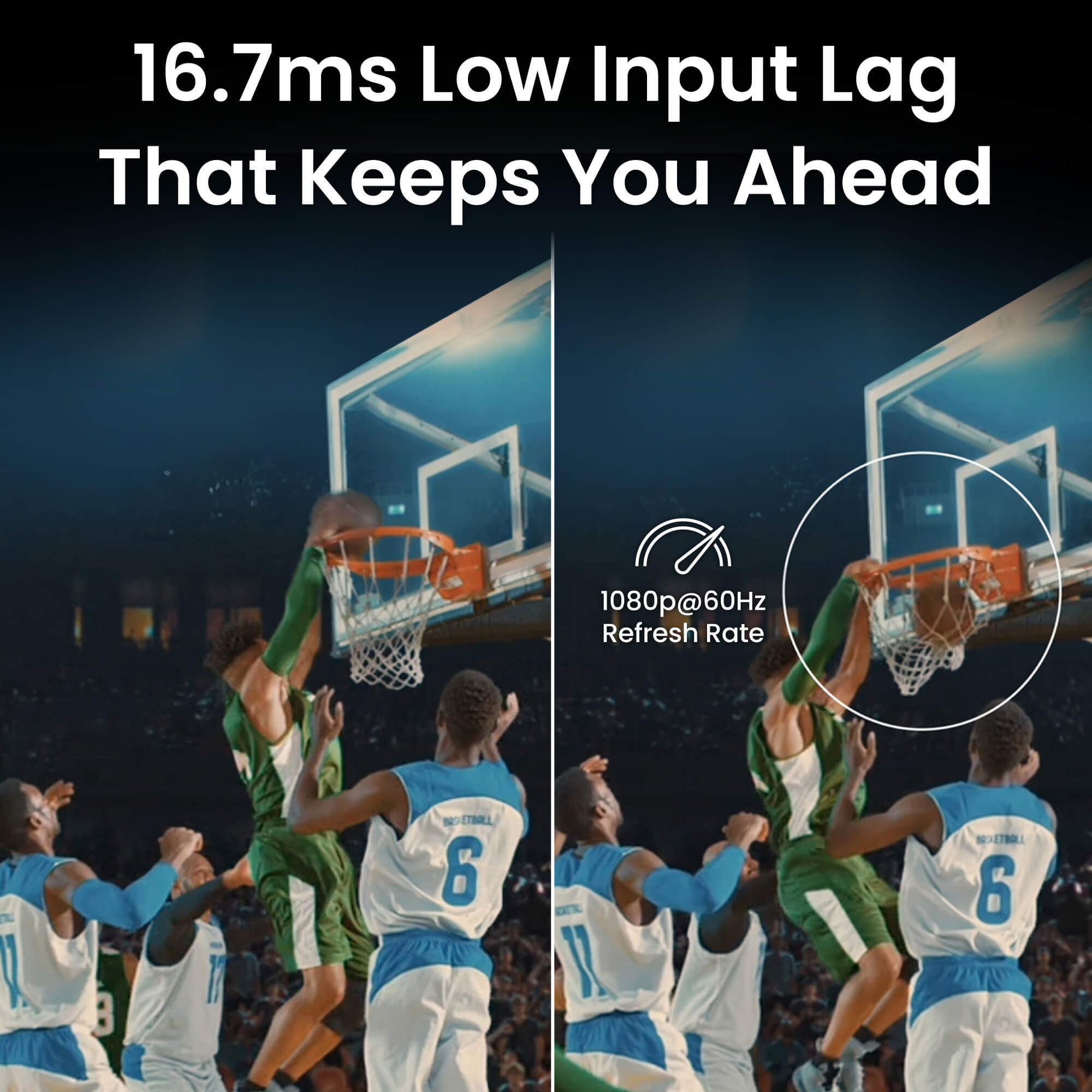 • Ultra-smooth 16.7ms low input lag gaming experience.