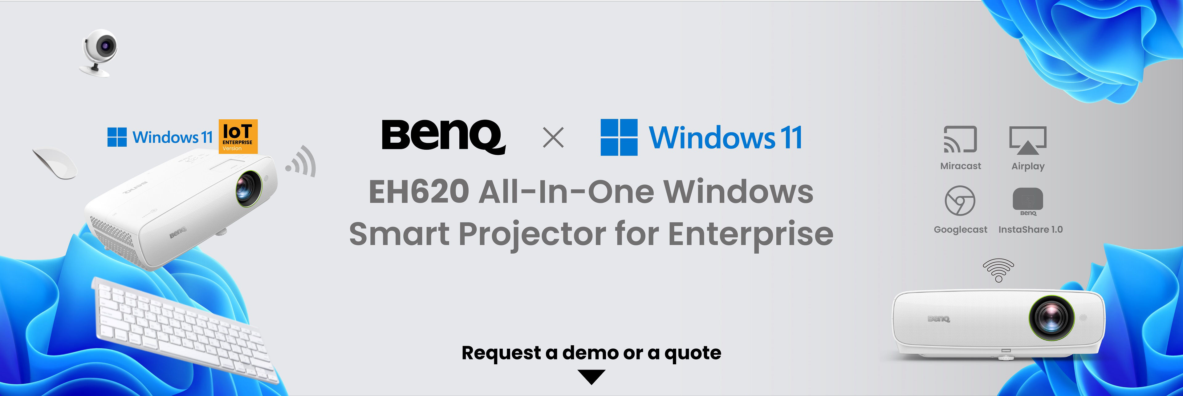 Transform a conventional meeting room into a modern cloud collaboration space. BenQ EH620 smart projector eliminates laptops and speakers, reducing device clutter but increasing capabilities when connected to a wireless keyboard-mouse set and webcam. Cloud workers can start smooth online meetings instantly.