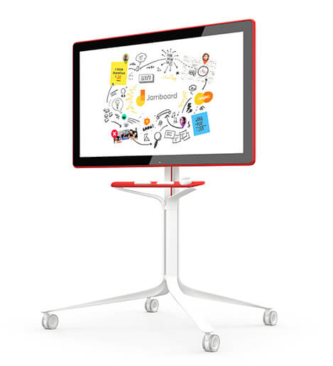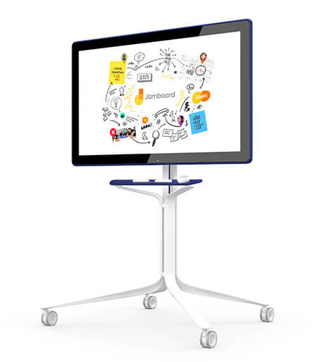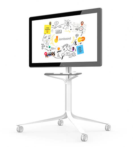 The custom-designed stand makes it easy to move Jamboard between meeting rooms.