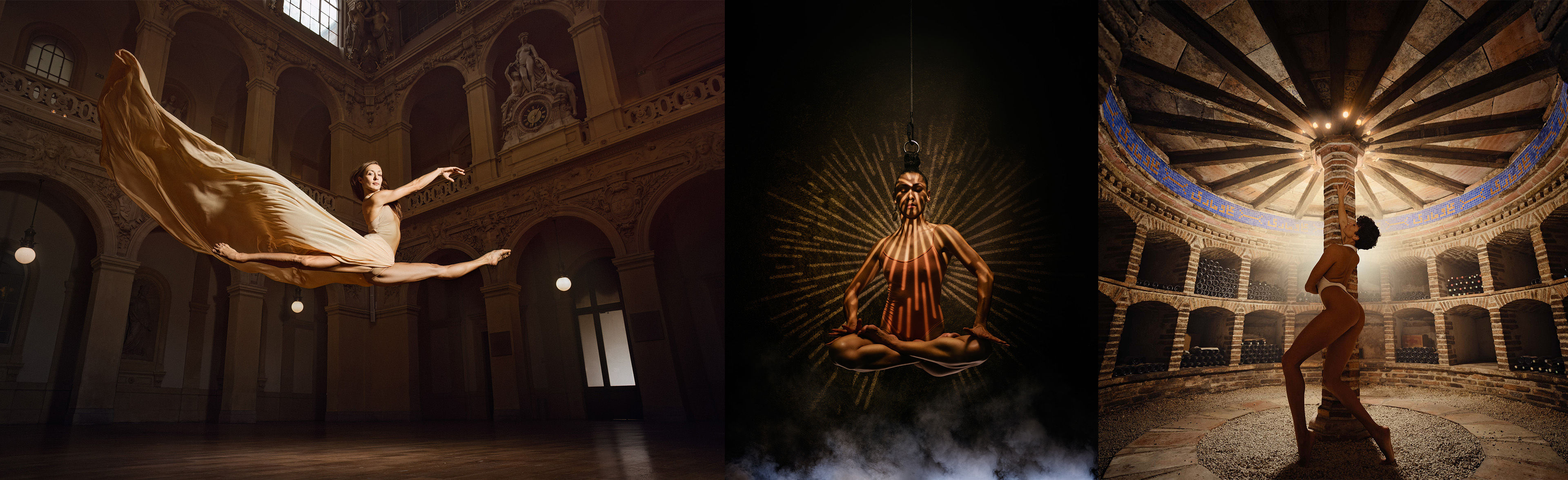 Not my first one, but the one that required a lot of preparation and multiple attempts for the first time. Huge flying fabrics, with a circus artist sitting on top of a chinese pole. I'll do things differently today, but this first one gave me a clearer idea of the direction I wanted to go in.