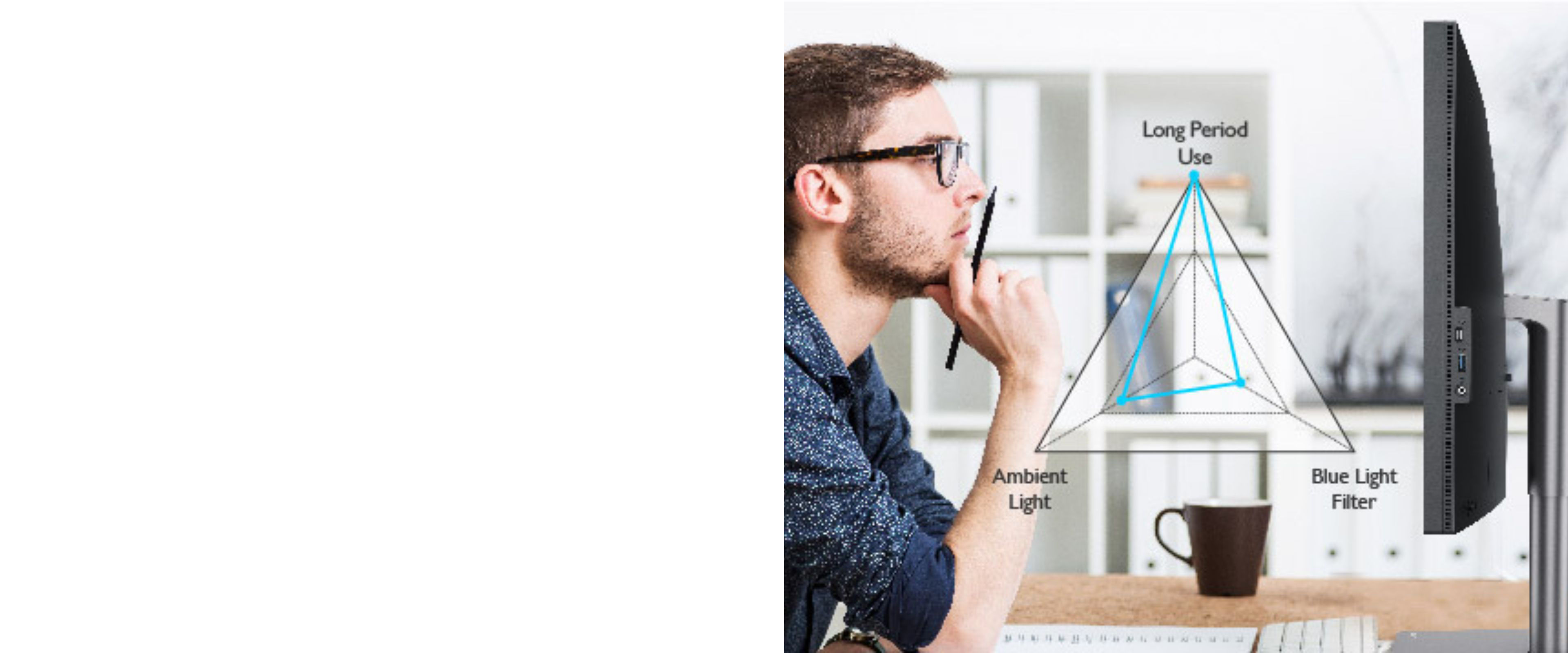 BenQ is the first monitor manufacturer to prioritize eye health. Since 2010 we’ve studied vision, monitor usage and behavior, and even how the environment impacts the computer viewing. Inspired, we developed technology and design innovation to add comfort, safety, and quality to your time at a BenQ monitor.