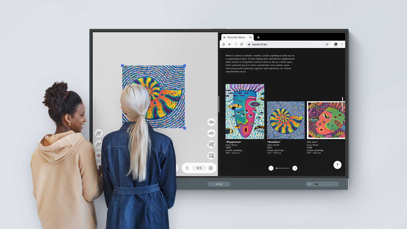 Teachers can easily import multimedia lessons and content, make real-time annotations, record their lessons, and share materials with students using smart boards such as the BenQ Board Pro RP04.