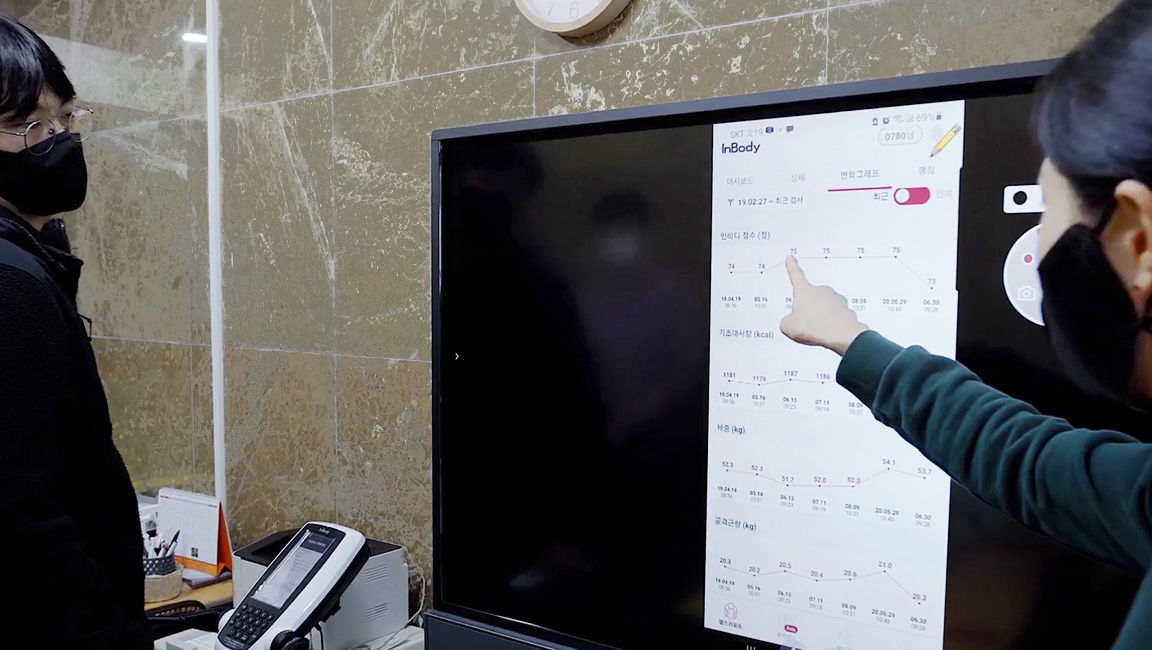 In the case of Gunsan Sports Club, they needed a solution that would allow them to give more interactive presentations. Since both of the sports centers they manage often get new members, they wanted an all-in-one display that they could use to give quick rundowns of their available sports and fitness programs and also discuss their members’ training options based on their real-time body composition assessments.