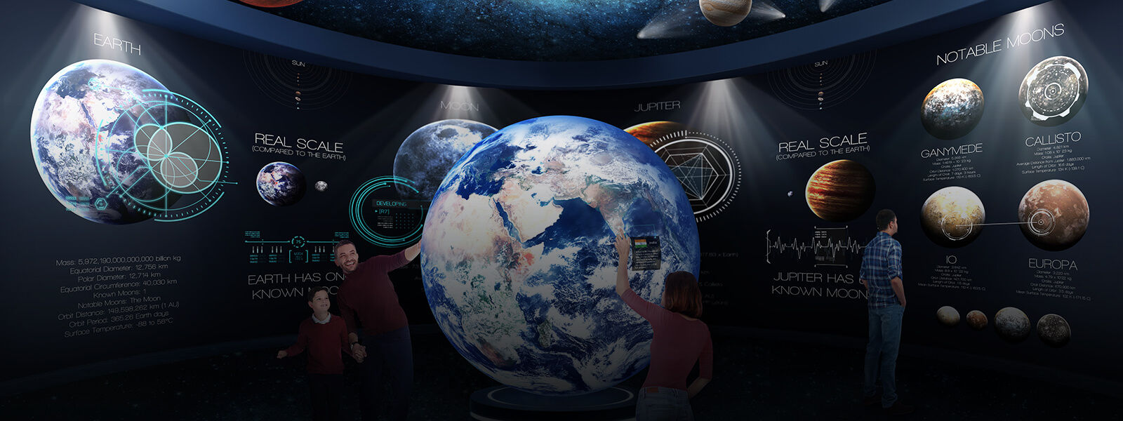 Since ancient times humans have desired to understand the universe. While our ancestors looked to the sky, these days many of us study astronomy in planetariums. Though astronomy can be vexing, it doesn’t have to be. According to Mehrabian’s rule, 55% of the sensory information we receive is visual. Furthermore, colorful and graphically rich content helps viewers retain information 82% more effectively. Offering projection solutions for circular video walls and interactive globes, BenQ can help planetariums show the secrets of the universe through immersive interactive experiences that visitors won’t soon forget.