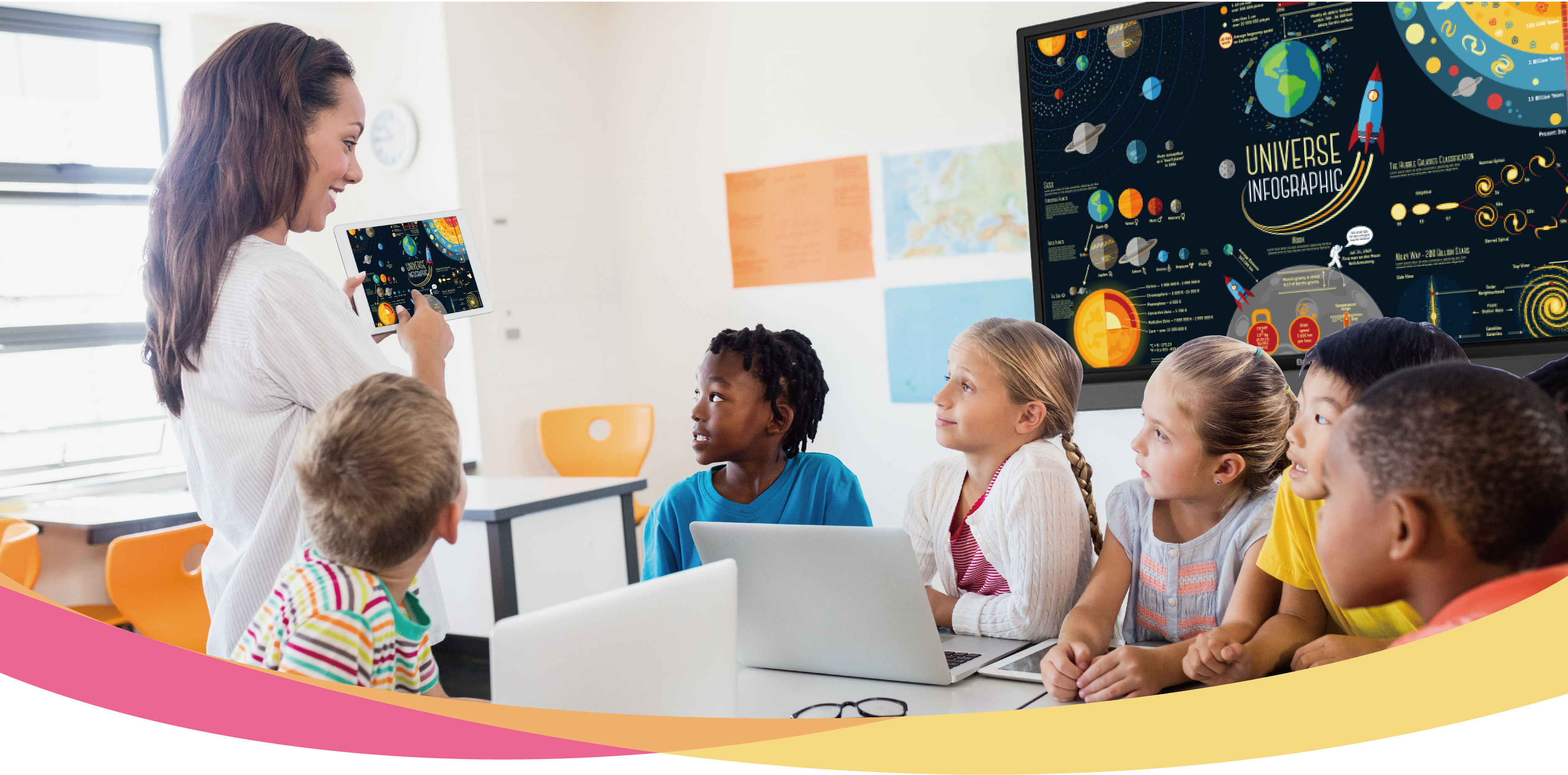This environment includes projectors and computers, but one technology that perfectly fits project-based learning is the interactive flat panel (IFP). The IFP is the perfect extension to the technologies that students are already familiar with. Children are adapting to technology at an increasingly younger age and are accustomed: smartphones and tablets. Students will be happy to work on the interactive flat panel’s surface as the lessons will remind them of fun games they have already been playing at home or with friends.