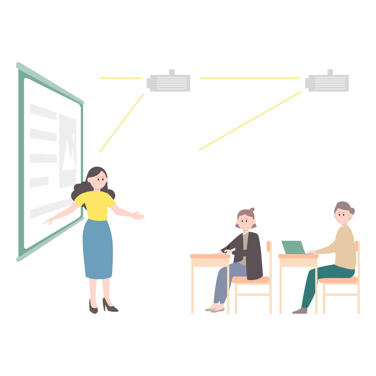 With a focus on interactive learning, K12 classrooms tend to feature tighter spaces with a smaller number of students which allows the teacher to move around and work with students either individually or in groups. This sometimes requires the use of interactive tools that allow the students hands-on access to the projected material.