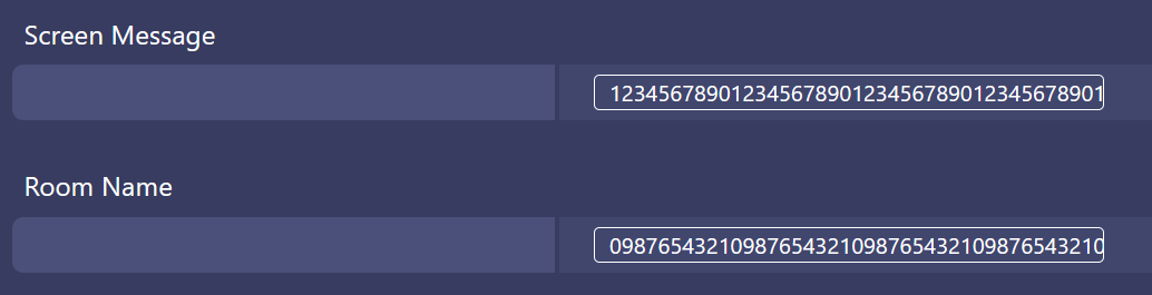 What is the maximum character limit for Screen Message and Room Name?
