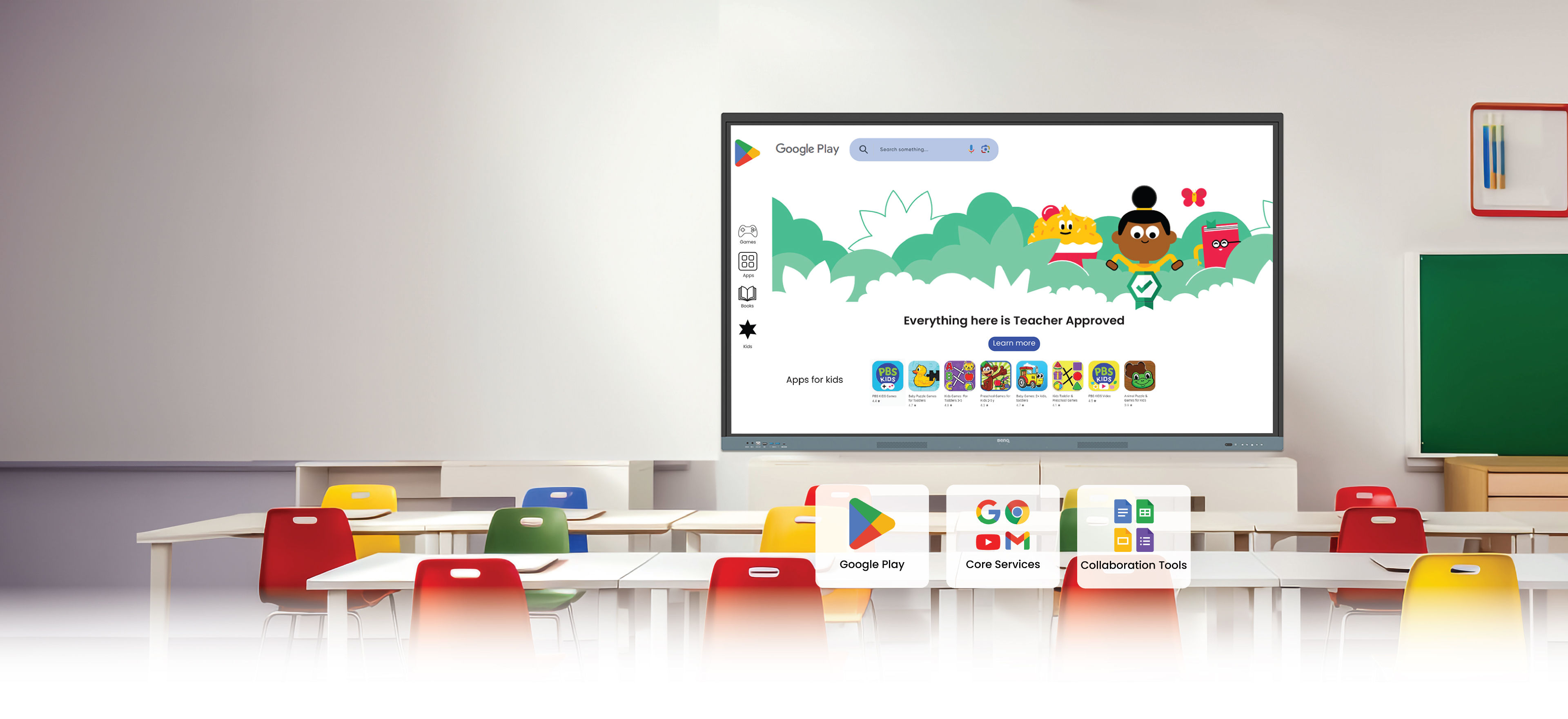 There are certain advantages to having a smart BenQ board with Google Mobile Services built in like official access to the Google Play Store, seamless integration with Google tools, better device security, and Install apps verified by Play Protect.