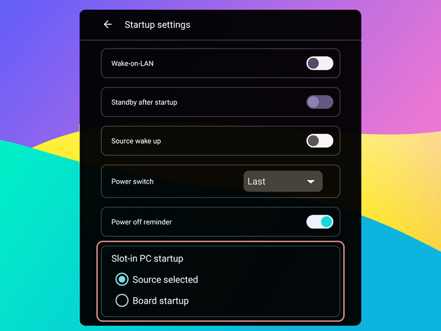 If you’re using an OPS slot-in PC with your BenQ Board, by default it will only start up when you select it as a source. This helps you save power by ensuring that the OPS device doesn’t automatically turn on when you start up the board.