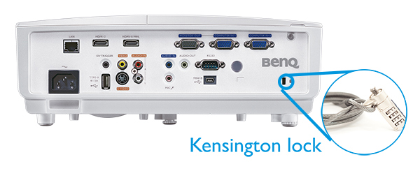 Designed for businesses to secure tabletop projectors, the Kensington lock interface provides “physical” security to meeting room projectors. BenQ business projectors are each built with a security bar to deter opportunistic thieves.