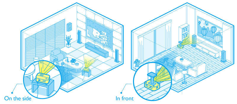 For the most comfortable and enjoyable movie experience, it’s important to consider how the space is used in addition to room size, Depending on furniture layout and how your family moves about in the room, it may be more convenient to place the projector to the left or right side of the screen to avoid obstructions in the projection path and to allow your family to move freely. In such cases, look for home theater projectors with horizontal keystone correction and side projection capability to project perfectly aligned images from the side. If the projector can simply be placed on a table or celing mounted in front of the screen, choose a model with vertical keystone correction to simplify ideal image alignment for maximum big screen entertainment without any need to change your décor.