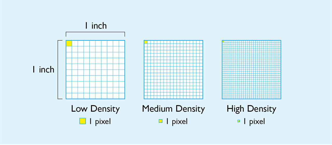 Pixel per inch (PPI), or the pixel density, represents the number of pixels contained in 1 square inch of area.