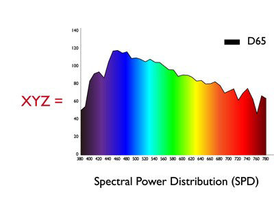 We could use a ruler to measure length, and use a scale to measure weight. When we measure colors, we need to measure light first. Measuring light is not as easy as using a ruler or scale, but there are instruments out there to help. For example, we could use a spectroradiometer to measure the spectral power distribution of the light.