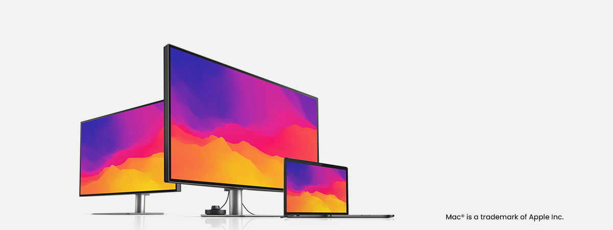Pretty simple to switch between two systems, right? When you get home with your Mac® devices, you can connect it to your workstation and get to work right away. Or, when you need to switch the work on the slave system, just use KVM switch in the OSD menu or the hotkey on the HotKey Puck G2. All this is done. There’s no need to designate the device to a port since the system will automatically go into pairing mode. One click will do to switch the input source. Either use KVM switch in the OSD menu or to click one time with a custom key on the HotKey Puck G2.