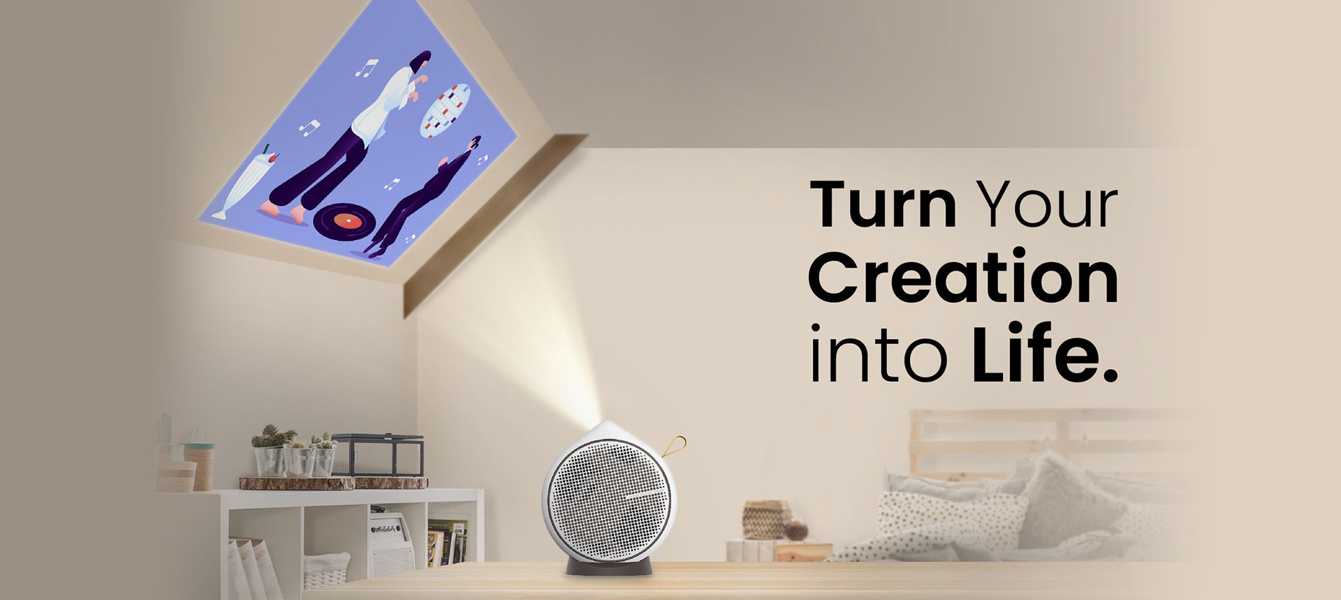 BenQ’s vibrant projection brings the beauty of nature into your home. This artwork invites its viewers to slow down and relax after a long day. With BenQ GV30’s rotation capability, turn your living room into a virtual garden and enjoy the outdoors without leaving the comfort of your home. Sit up or lie down, the choice is yours with the new BenQ GV30.