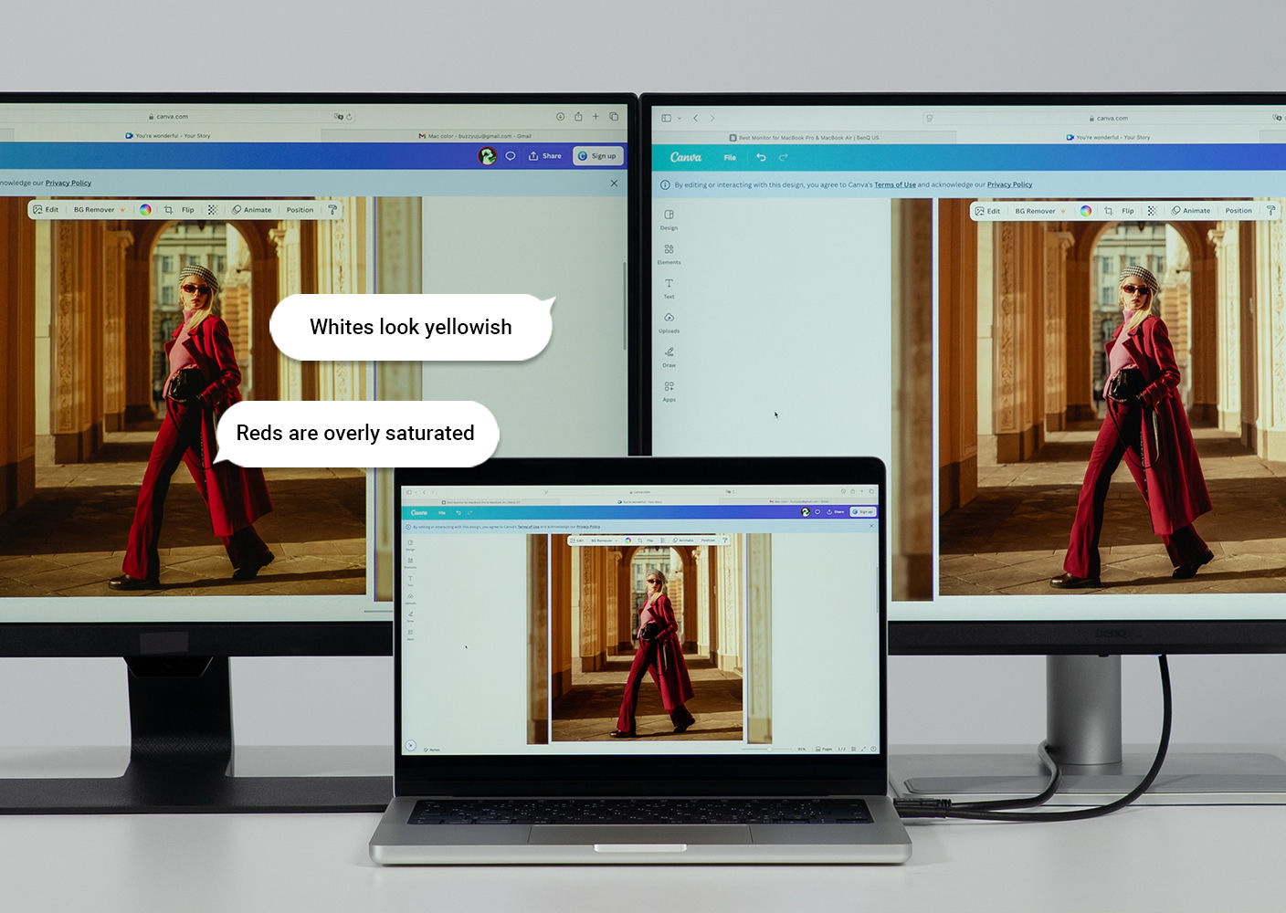• The same photo looks completely different on your MacBook compared to the external monitor.