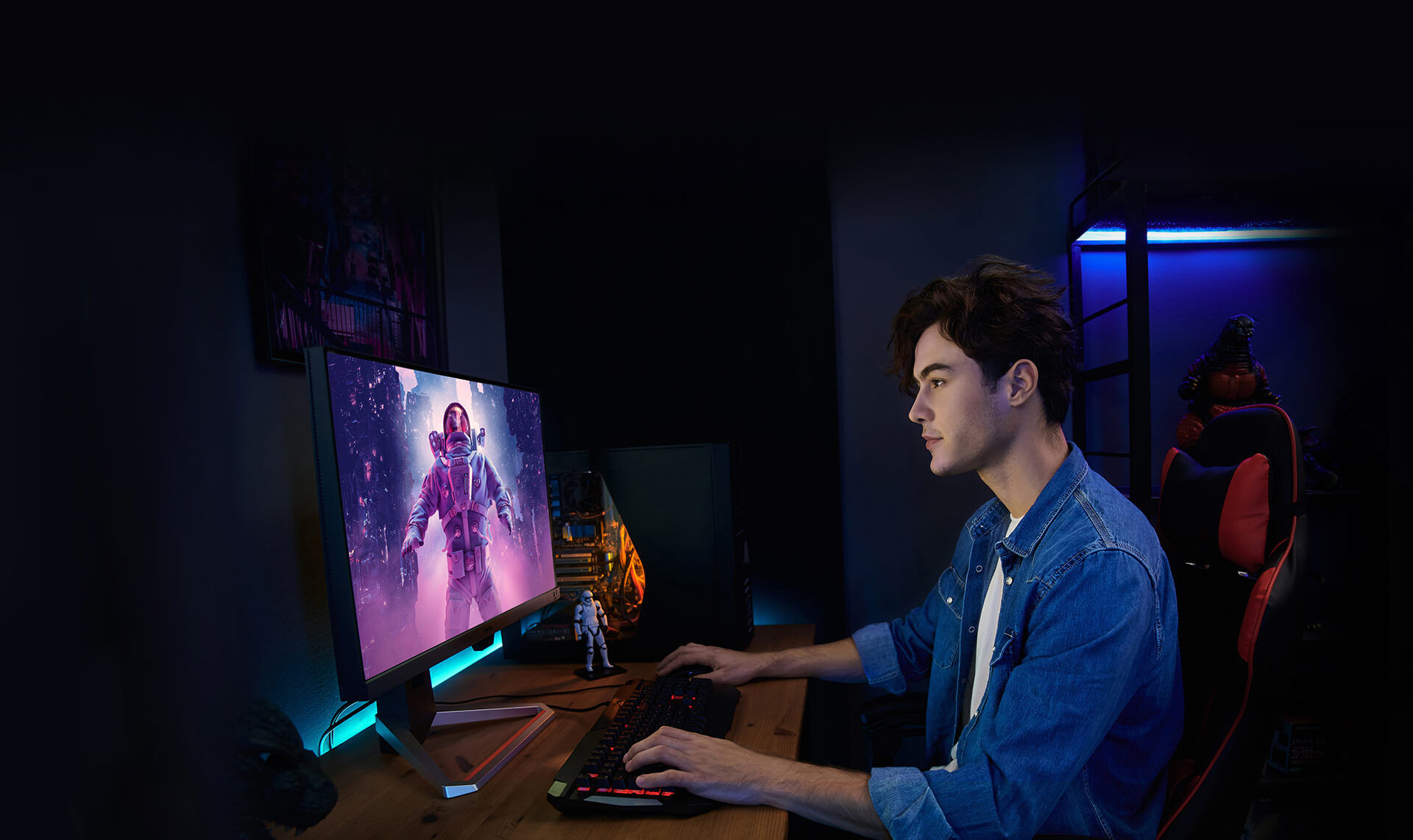 HDRi immersive detail draws you into the game. A discrete sensor detects ambient light levels and assesses then adjusts on-screen HDR images so you see every detail. Customized color performance, detail contrast, and image clarity add intensity.