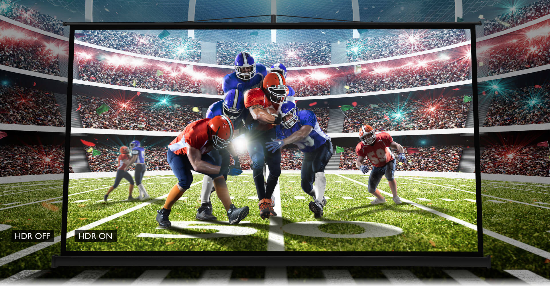Experience excitement in true-color glory. BenQ Home Entertainment Series’ HDR color mapping ensures darks color are rich and deep and hew close to HDR10 and HLG standards, so that you hear and see every play just as it happens.