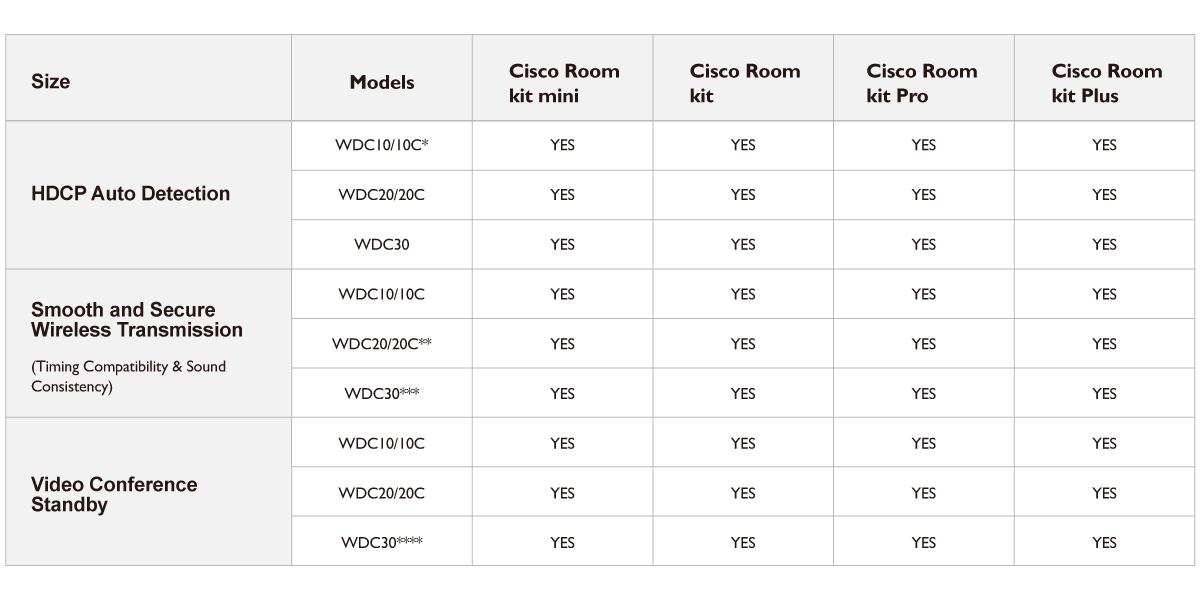 **** The WDC30 supports Video Conference Standby via Airplay and Chromecast.