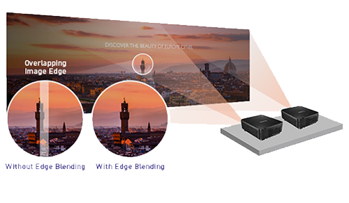 Edge blending support provides the ultimate solution for connecting multiple projections with consistent color and brightness. This empowers operators to impress travelers with astoundingly huge images that are seamless and unified.