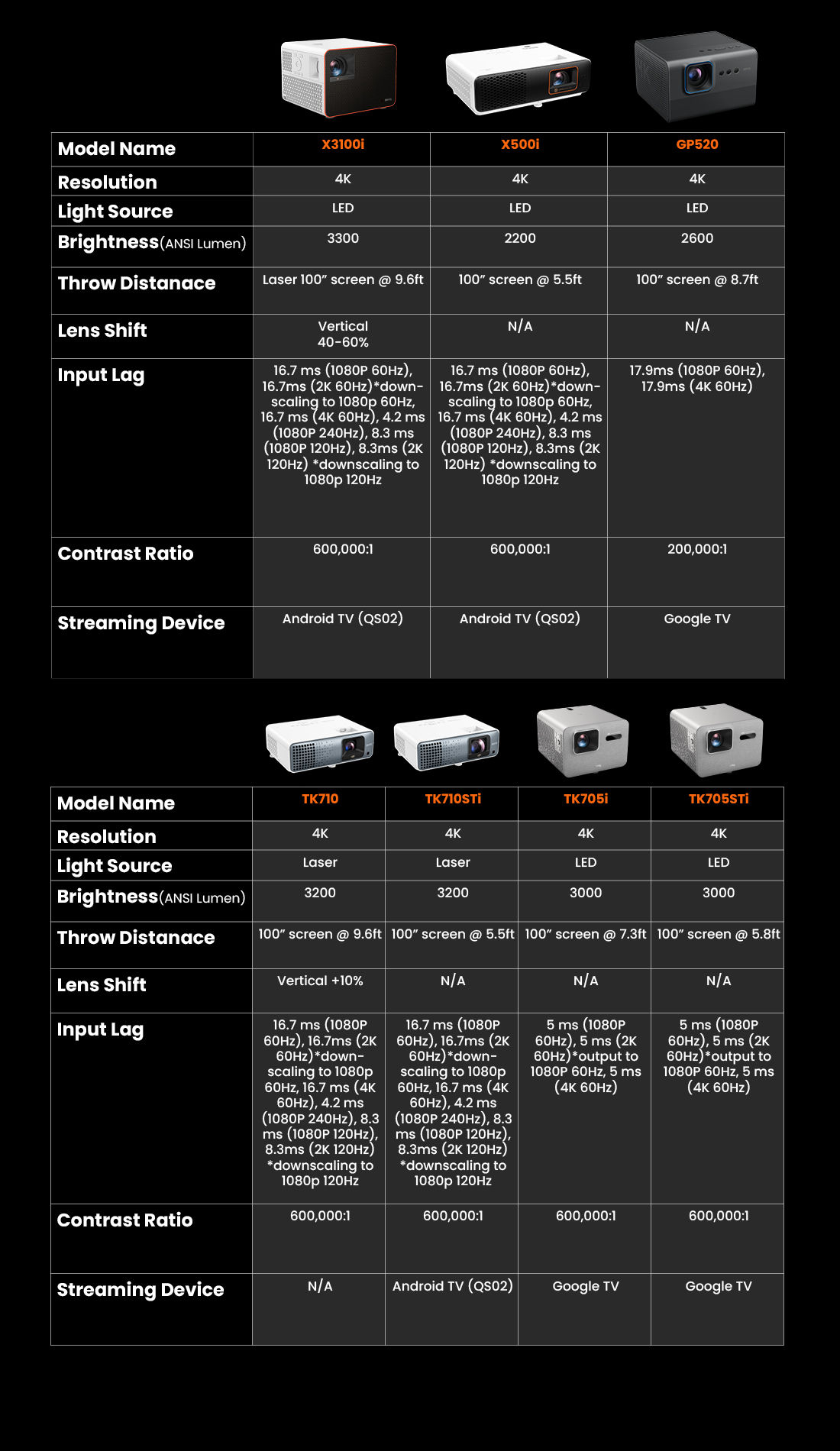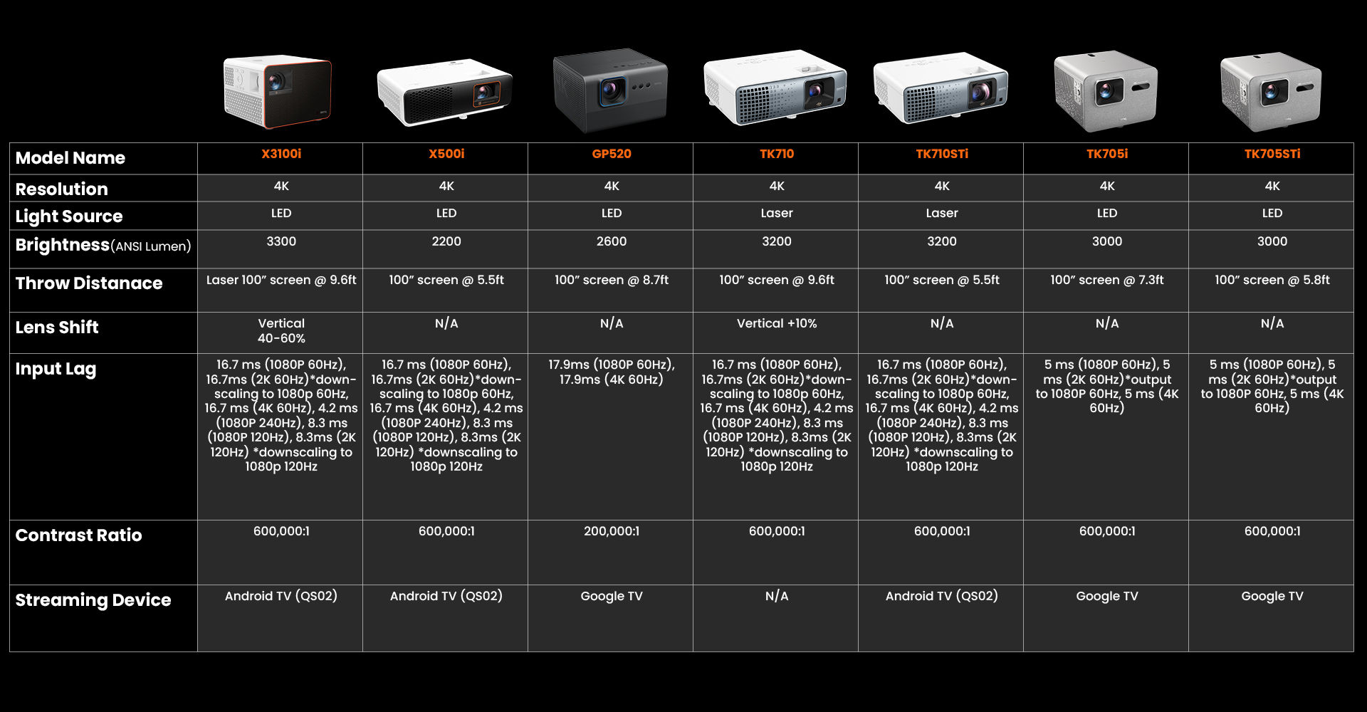 4K Gaming Projectors Home Cinema Series TV Projector Series Portable Projectors Golf Simulator ProjectorsBy Feature