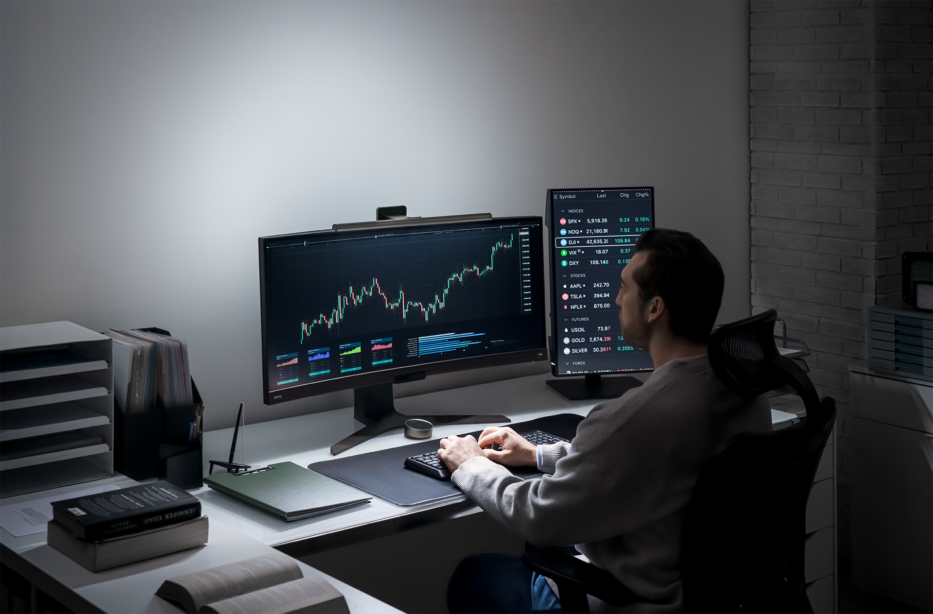 Unlike traditional desk lights, a ScreenBar® leverages advanced optics to provide the ergonomically ideal distribution of light: clear, even illumination that brightens your workspace without glare or screen reflection. By directing light where it’s needed, monitor light bars balance comfort and contrast to keep you in a state of steady focus and clear thinking.