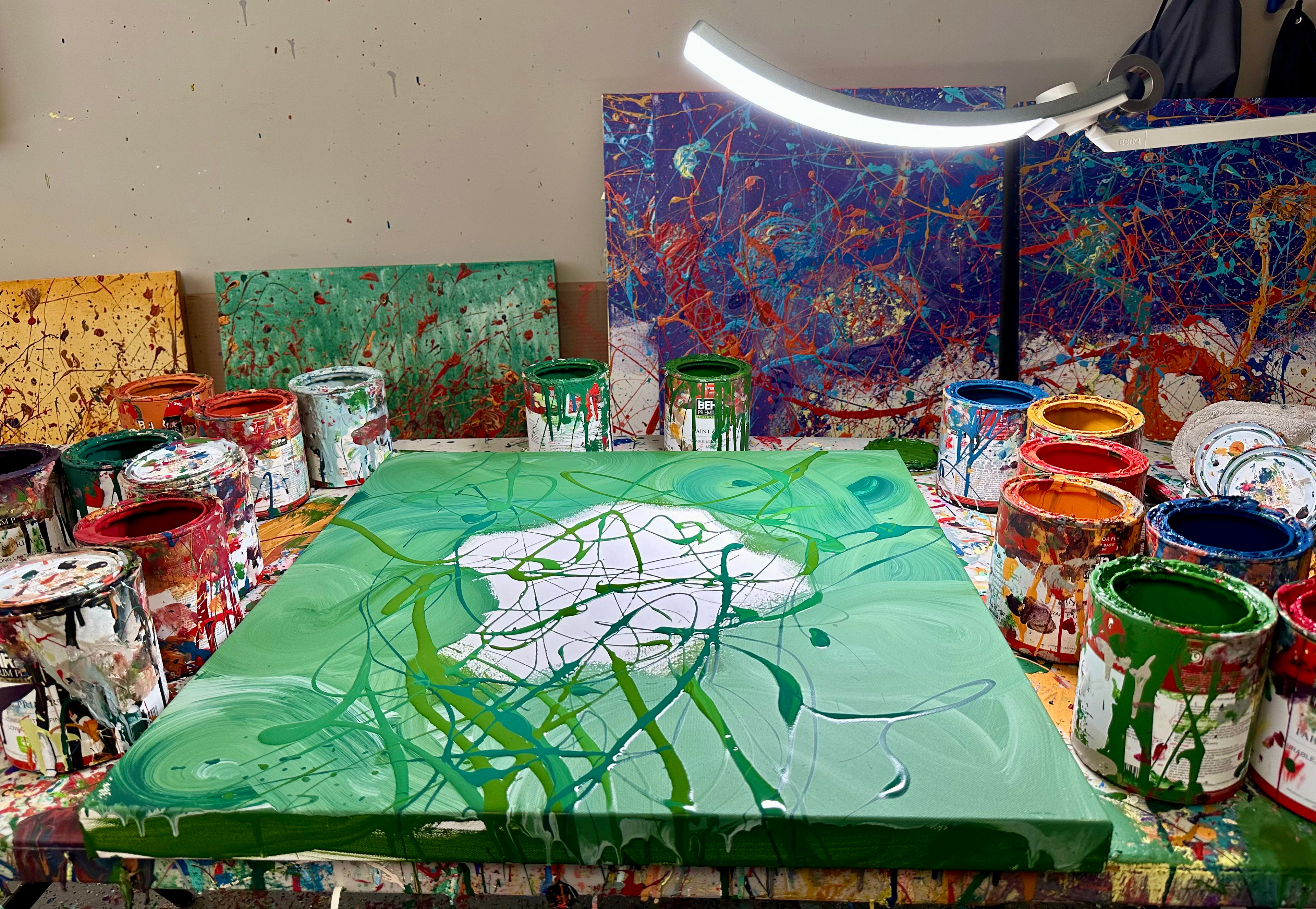 John: I find inspiration in the abstract expressionist movement, particularly drawn to artists like Pollock, especially in my early years. I continue to explore and incorporate his groundbreaking visual language into my work in various ways.