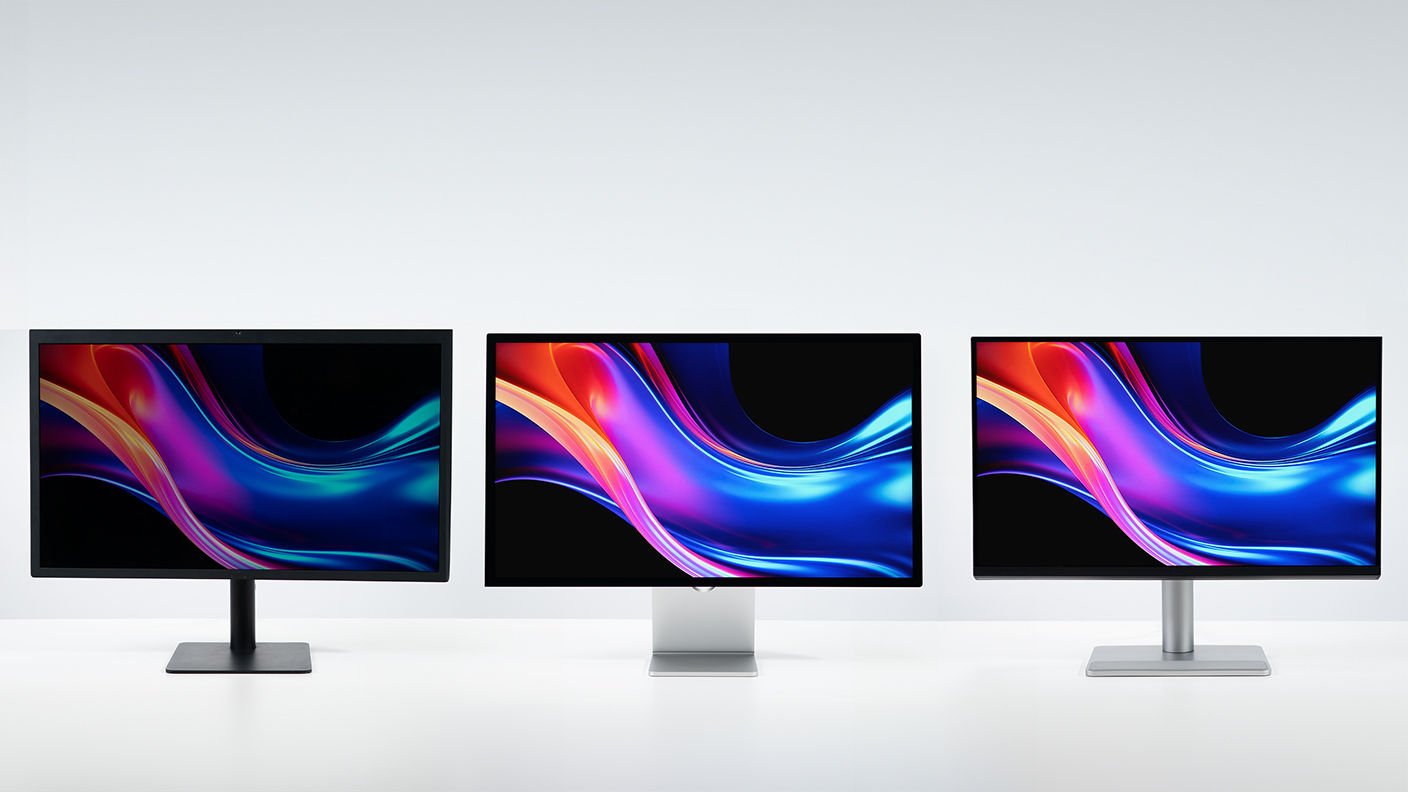 Left: Apple Studio Display (for reference) / Center: MacBook® (for reference) / Right: BenQ Nano Gloss Panel