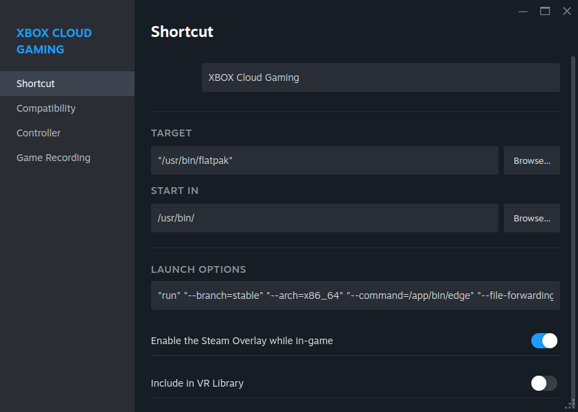 With this configuration, launching Microsoft Edge from Steam will now directly open Xbox Cloud Gaming in full-screen mode, making it feel like a native app on your Steam Deck!