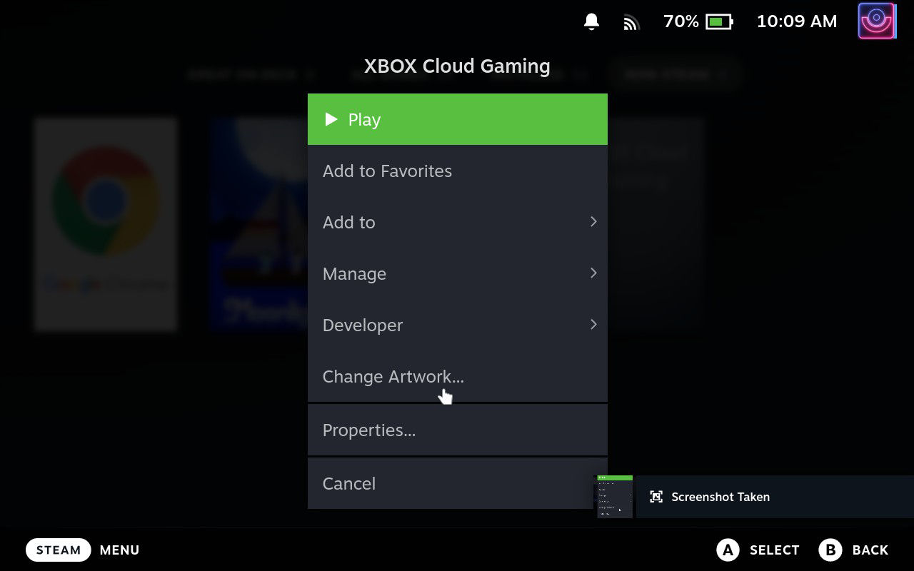 With the help of Decky Loader, it’ll be way easier to change the artwork of the now newly named Xbox Cloud Gaming cover. Just make sure that you have the Steam Grid DB plugin ready. Once you have that, go into change artwork and properties.