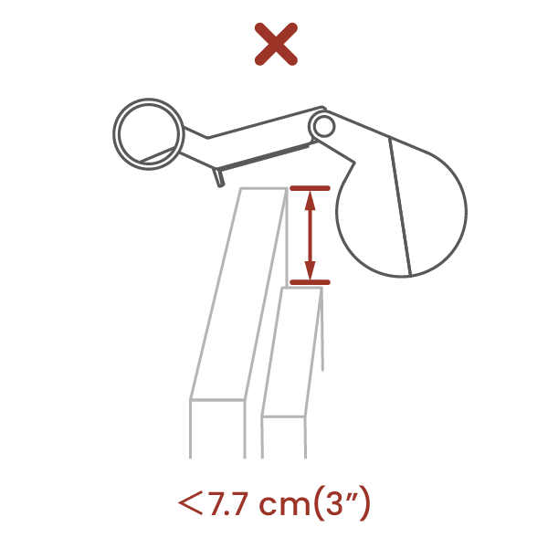 • Flat : 0.7cm - 6cm (0.3''- 2.4'') / Curved : 1.6 - 3.8cm (0.6" - 1.5")