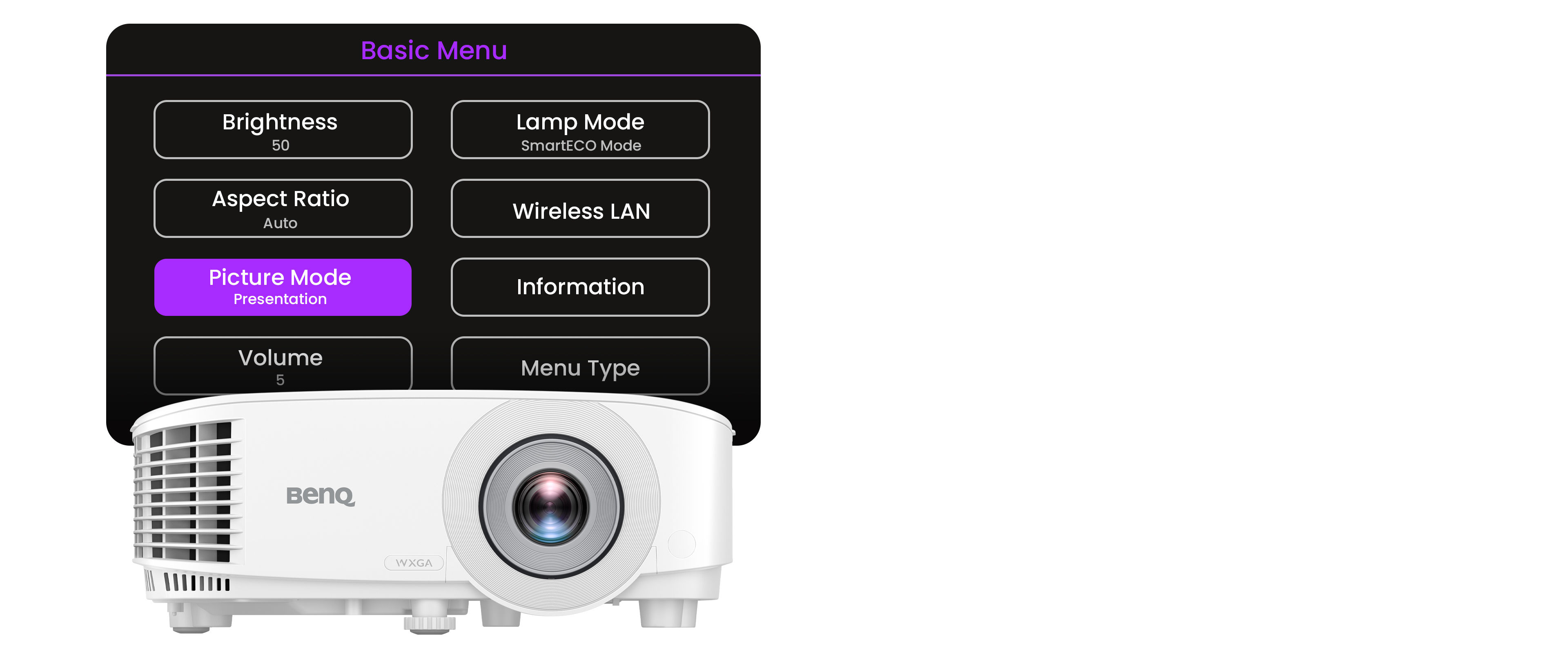 SmartEco Mode reduces lamp power consumption up to 70%.