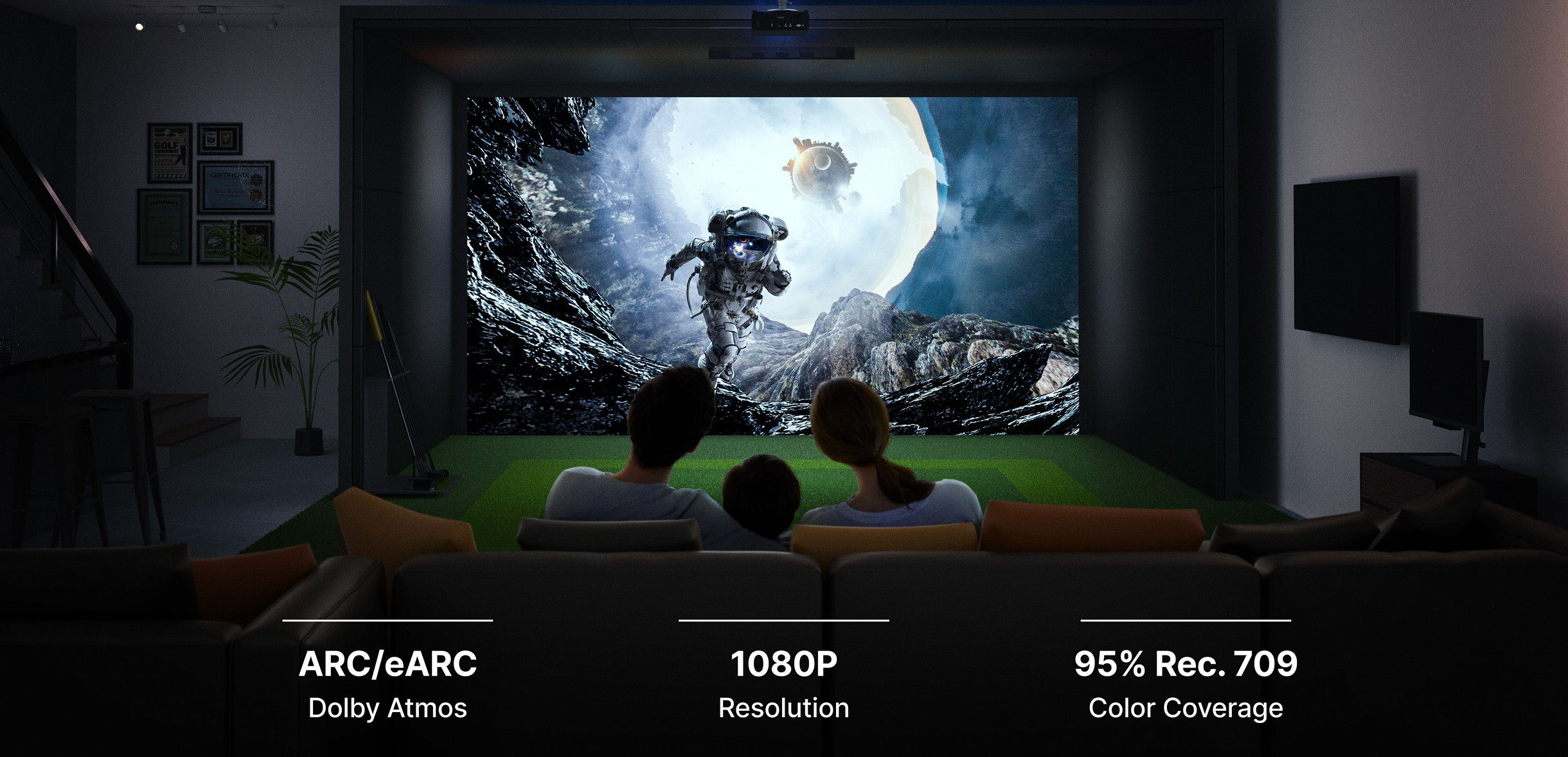 Built for dedicated golf simulation, the AH700ST also lets you enjoy movies and sports watching in stunning 1080p FHD with accurate 95% Rec.709 and Cinema Mode for rich colors, and supports eARC for immersive audio when paired with a compatible soundbar. It also offers low input lag for smooth, responsive gaming, adding more ways to enjoy your space.