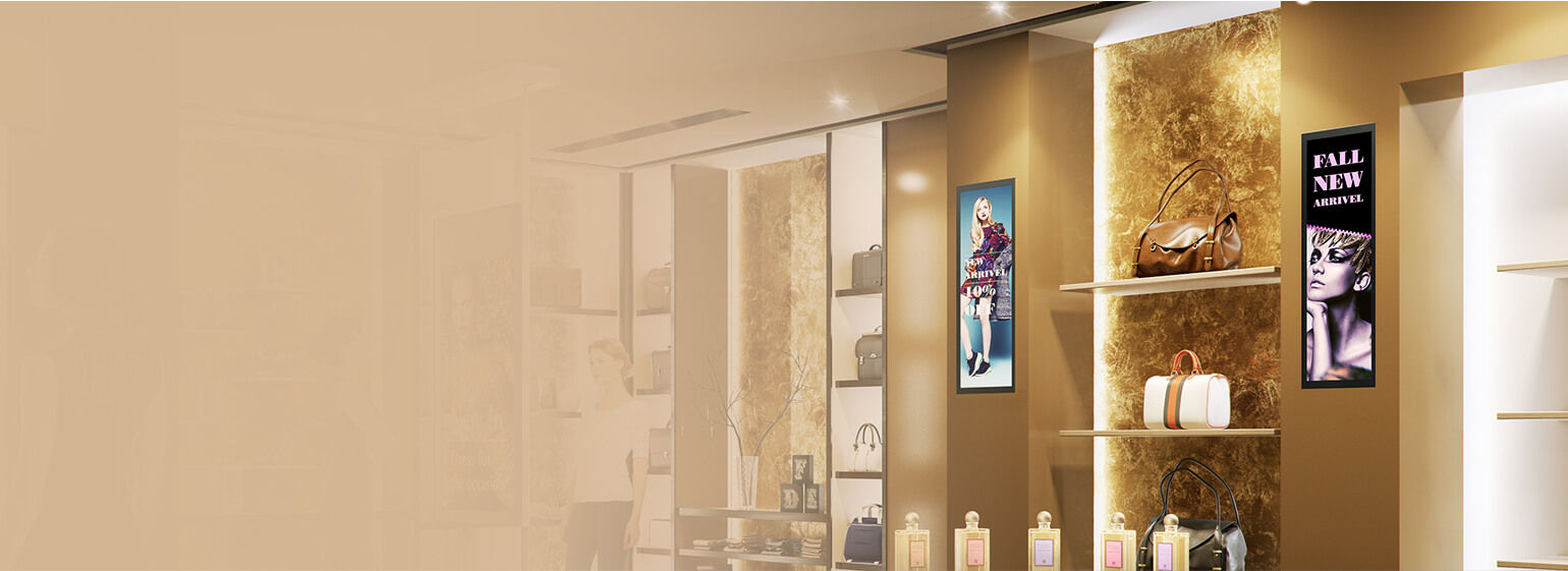 Las Pantallas de tipo barra están diseñadas para cumplir con las demandas de espacio únicas de cualquier boutique. El diseño estilizado largo y estrecho hace que las Pantallas de tipo barra sean ideales para zonas frecuentemente poco utilizadas como probadores o cerca de la caja registradora, lo que promueve, por lo tanto, la venta directamente a los consumidores a donde quiera que volteen.