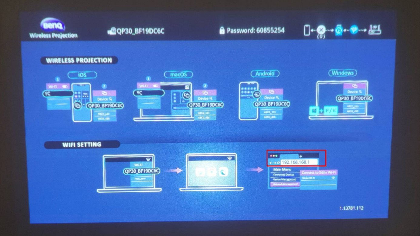 2. Abre tu navegador web y ve a la dirección del proyector desde la imagen proyectada como la siguiente imagen.
