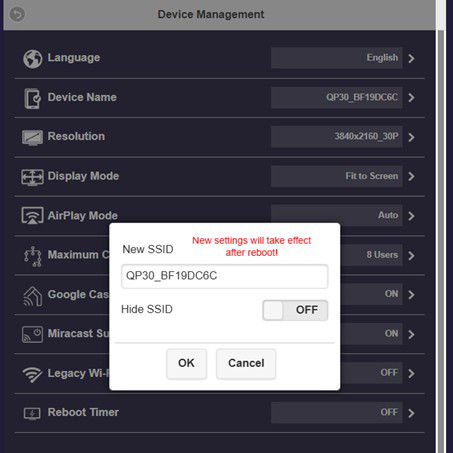 1. Conecta el QP30 a tu proyector e Internet.