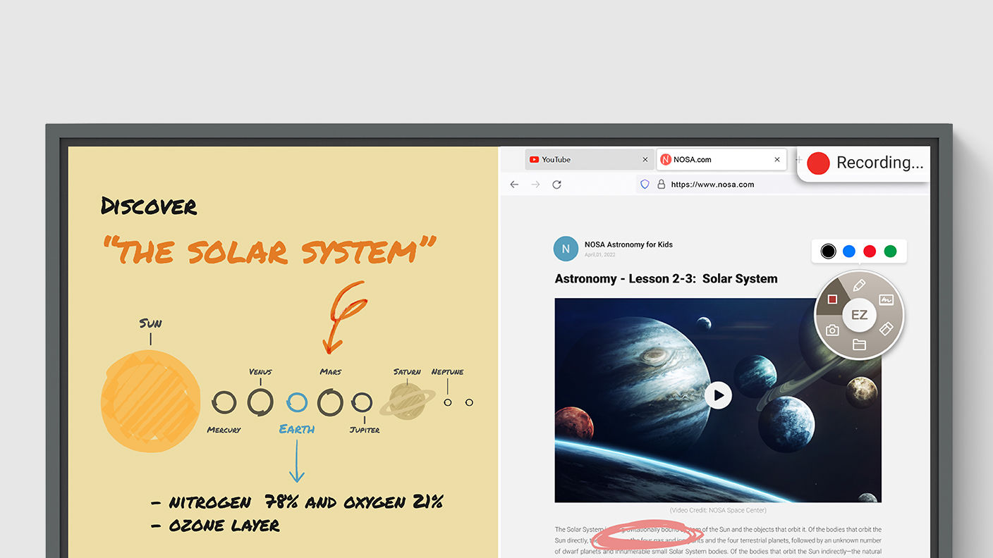 Imagina poder grabar cada clase que impartía Albert Einstein tocando una sola vez la pantalla. Aunque es una característica estándar en muchas pizarras inteligentes premium, ahora muchas pantallas interactivas esenciales incluyen el hardware, software y conectividad necesarios para grabar una clase simplemente tocando con dos dedos.