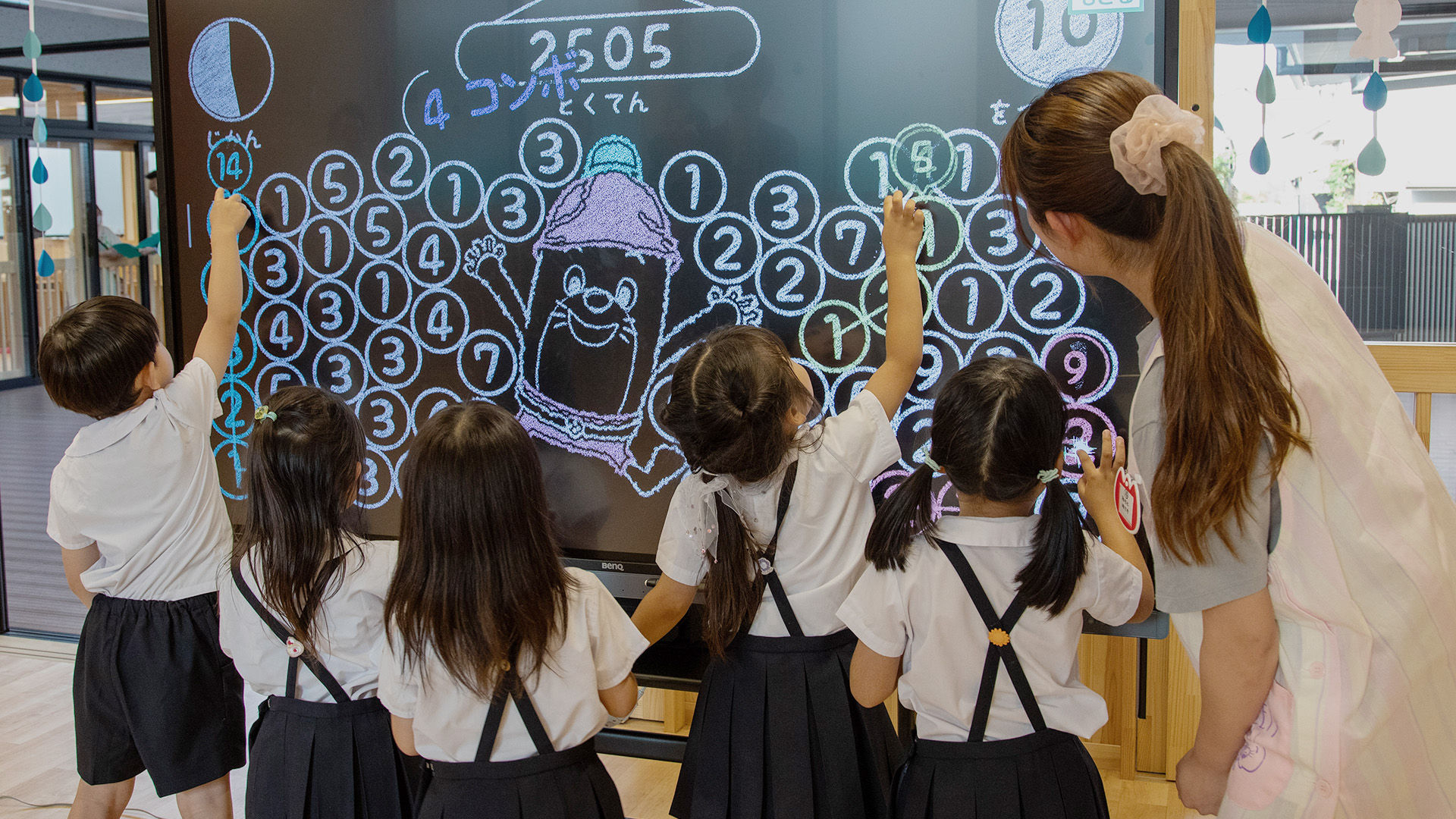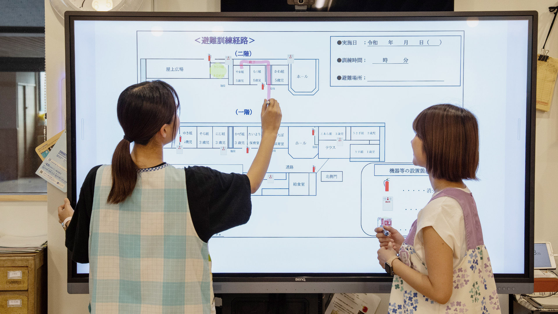 Como parte del movimiento, se anima a las escuelas participantes a impulsar la transformación digital. Para ello, el Jardín de Infancia Kodaira Midori buscó incorporar pantallas interactivas para mejorar el aprendizaje de los niños y optimizar la formación y eficiencia del personal. Taku Hakoyama, subdirector de Hoshino Gakuen, tenía desde hace tiempo el deseo de emplear pantallas interactivas en las aulas y consideró que este era el momento ideal para adoptarlas.