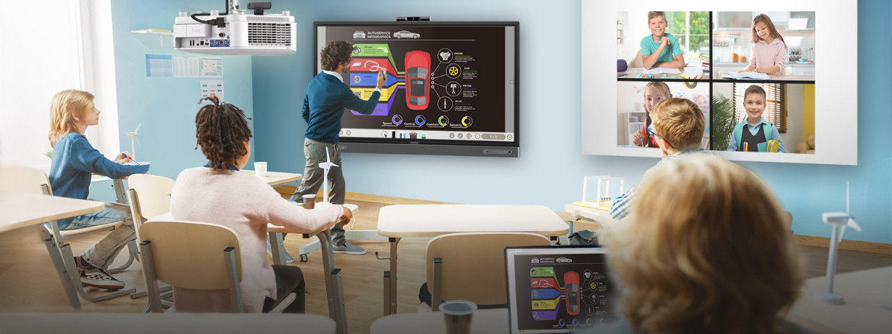 Siswa dapat masuk ke papan tulis cloud dari peramban Chrome, Safari, atau Firefox untuk bergabung dalam pelajaran dari jarak jauh. VC bawaan meningkatkan sesi tatap muka dan ideal untuk pembelajaran di dalam kelas dan jarak jauh.