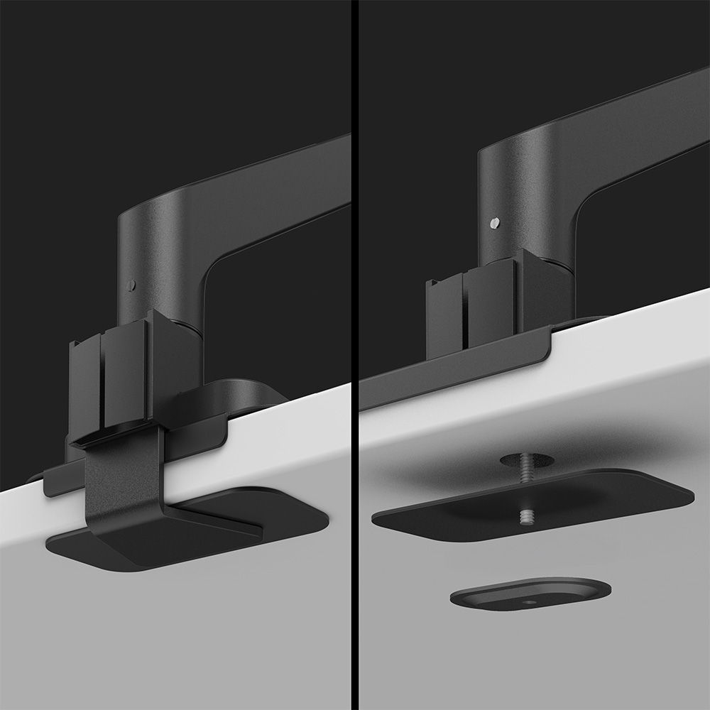 Kompatibel dengan sebagian besar bahan. Untuk permukaan meja berlubang, papan sarang lebah, MDF, atau permukaan kaca, diperlukan pelat penguat untuk memastikan pemasangan yang stabil.
