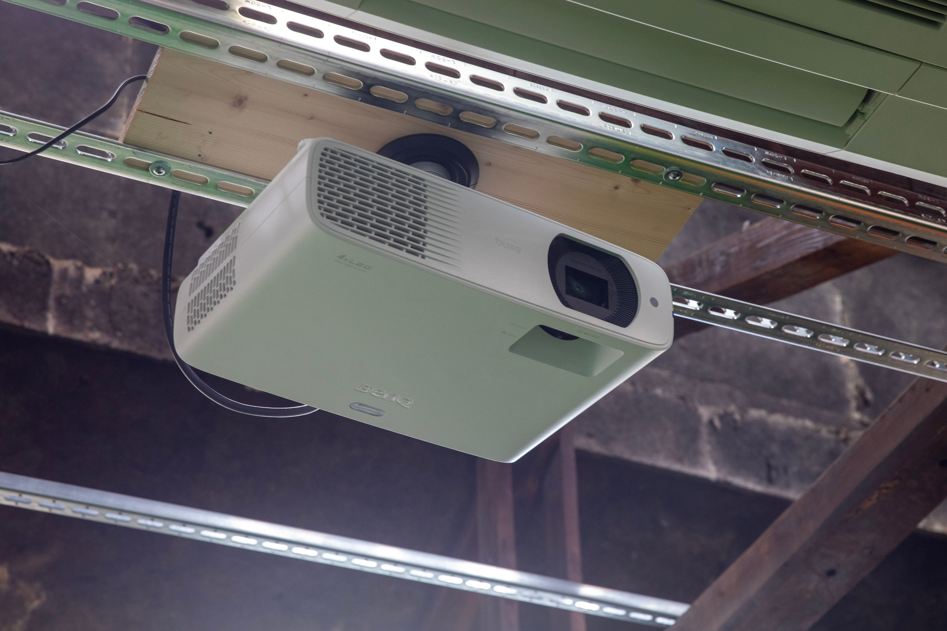 一方、蒋氏は自らが使用するだけでなく、インドアゴルフ場の設計や設置、フィッティングなども行っていますが、BenQのプロジェクターについては、その性能だけでなく、アクセサリーとして用意されている「プロジェクター用天吊金具」についても絶賛。