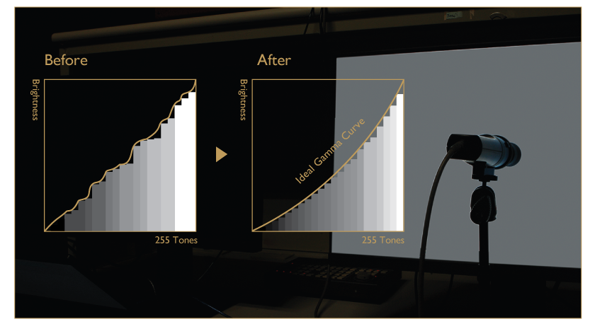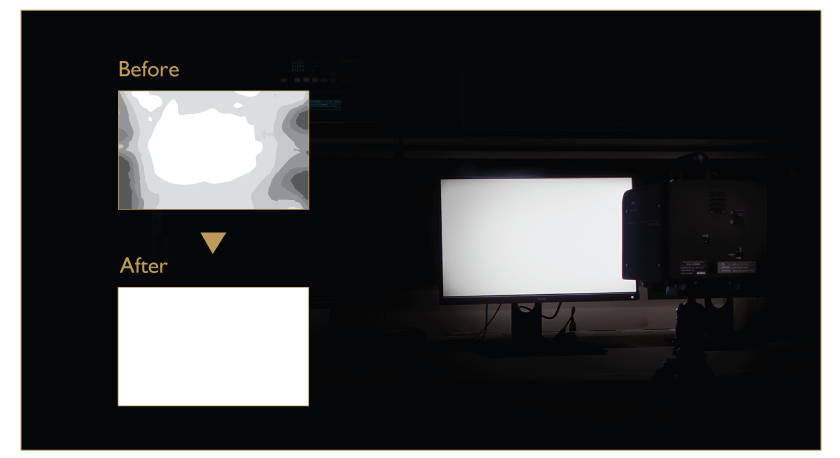 画面の隅々まで均質になるように、BenQは画面全体で色と明るさのムラを微調整します。