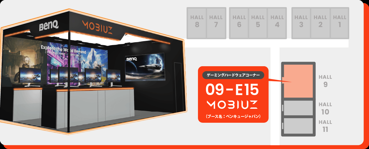 今年の東京ゲームショウでは、世界初展示となる最新4K QD-OLEDゲーミングモニターが登場します。 ブースでは、美しく作り込まれたゲームの世界を巡る“ビジュアルの旅”を誰よりも早く体感できる特別な試遊スペースをご用意。 さらに、来場者だけが参加できる限定キャンペーンやイベントも実施予定です。 「BenQ MOBIUZ」と一緒に、ゲームを味わい尽くそう。