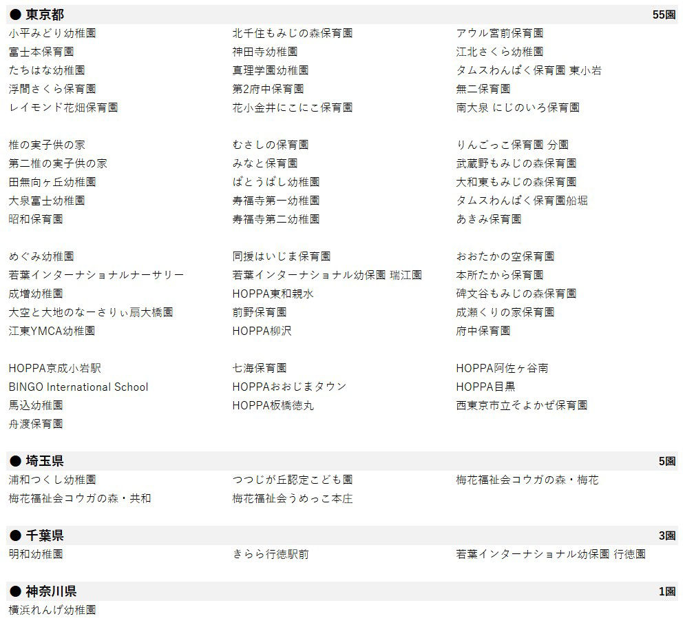 (順不同) ※掲載の許可を頂いた園様のみ掲載しております。