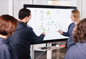 Android™ および iOS 向けの Jamboard アプリを使用すると、スマートフォンやタブレットから簡単に参加して創造性を発揮できます。会議室でアプリを使用して Jamboard のセッションを要求する事や、パソコンからもJamを開く事が出来、G Suite 上にあるコンテンツを追加することもできます。
